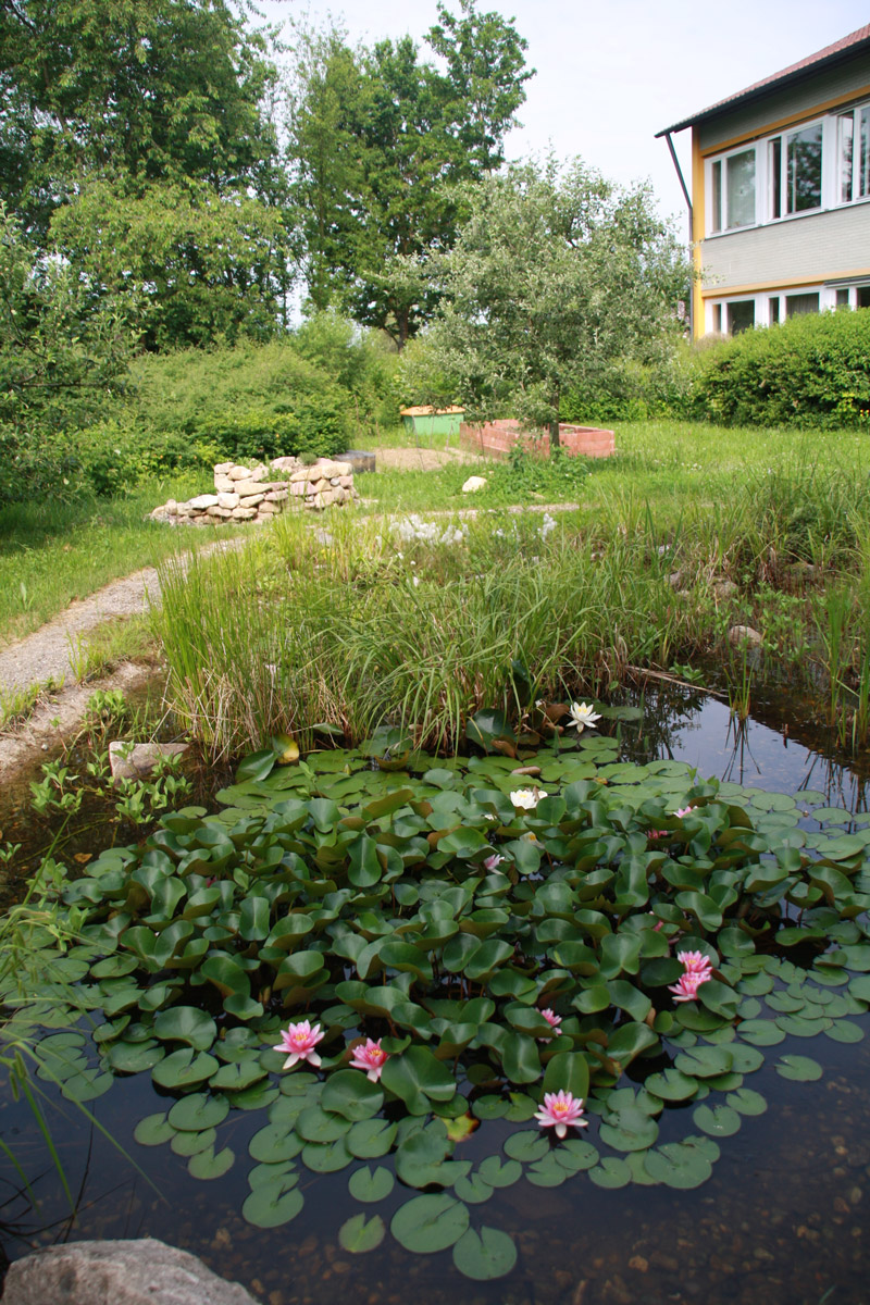 Direkt an das Schulgebäude grenzt der eingezäunte Schulgarten. Mit seinem großen Teich, der Kräuterspirale, den Hochbeeten und den Apfelbäumen bietet er unseren Schülerinnen und Schülern vielfältige Naturerfahrungen an. Gepflegt wird der Garten an Projekttagen. Für eine Garten-AG sucht der Förderverein aktuell eine Leitung (Stand Januar 2026).