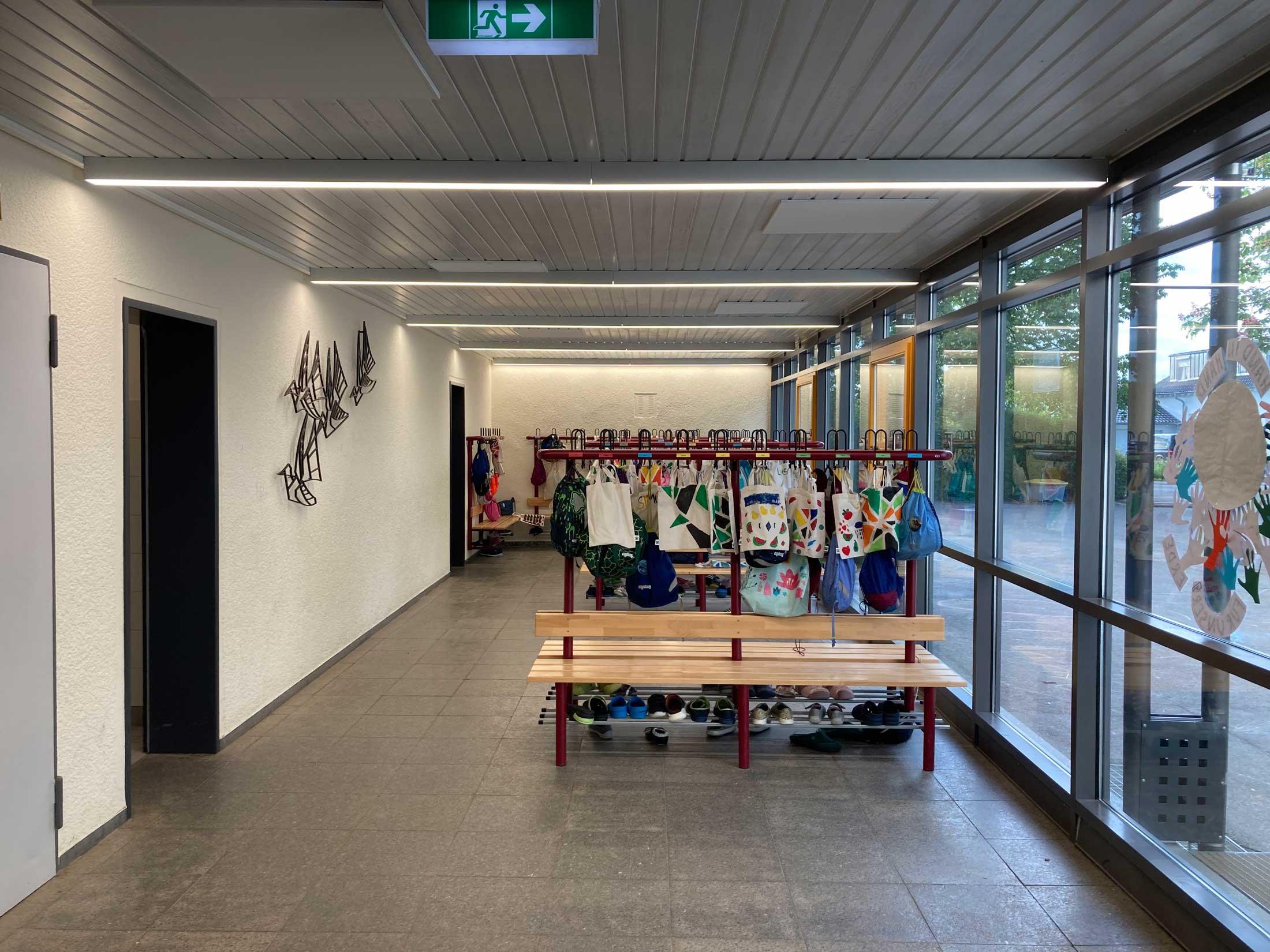Das Schulgebäude selbst strahlt eine freundliche und einladende Atmosphäre aus, die zum offenen Lernen und Entdecken einlädt. Die Räume sind kindgerecht gestaltet und bieten den Schülerinnen und Schülern ausreichend Platz für Unterricht, Gruppenarbeit und kreative Aktivitäten. Klassenzimmer, Differenzierungsräume sowie Lern- und Rückzugsorte sind so angeordnet, dass sie ein abwechslungsreiches und altersgerechtes Lernen ermöglichen.
